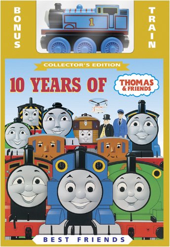 This commemorative Collector’s Edition DVD celebrates 10 years of Thomas the Tank Engine & Friends in America, and highlights Thomas’ favorite friends, as chosen by the experts - his loyal fans! Children love Thomas and his friends because they can identify with their everyday friendships, squabbles and rivalries and parents love Thomas because of its entertaining wholesome qualities that teach gentle messages important in developing good morals and values.In this anniversary DVD, children from across the country came outfor a special day with Thomas to share with us their favorite Thomas friends and episodes, and to help us choose these 10 classic Thomas stories. In a live-action clip introducing each episode, you’ll learn straight from the fans just what they like about their favorite characters. The grand finale features the music of Thomas’ theme with special appearances by all of the friends Thomas has made over the last 10 years! Our Story Stops Are: Thomas and Bertie's Great Race, Old Iron, The Trouble with Mud, Terence the Tractor, Percy's Ghostly Trick, Mavis, Henry the Elephant, Percy's Promise, James Goes Buzz Buzz, All at Sea.